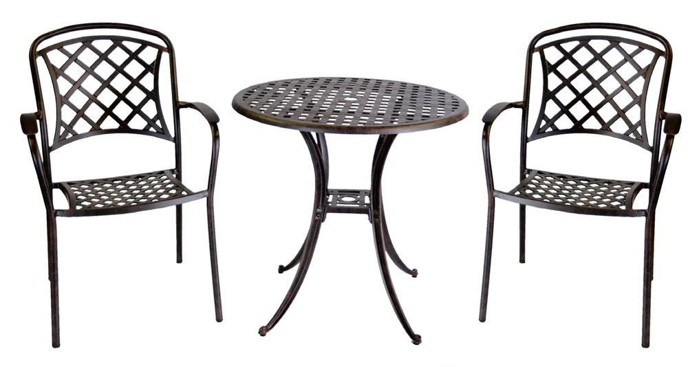 Bistro outdoor furniture dining sets are designed for maximum comfort and elegance in any compact area you are looking to furnish, whether on a porch, balcony, or cafe. Chairs are stackable, with no assembly. They're lightweight enough to easily move around, but heavy enough to not get blown about by the wind.