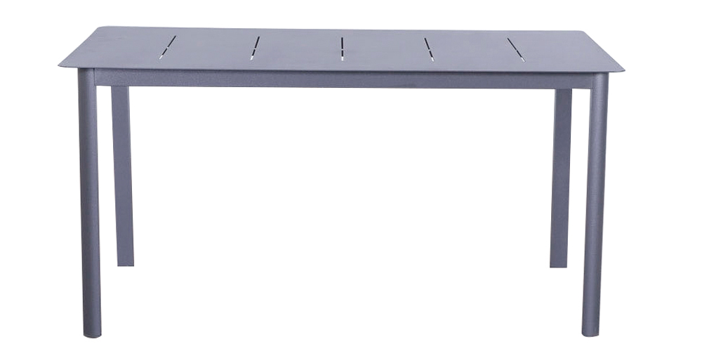 The table is straightforward. It has a clean rectangular top in a matching grey, supported by four substantial round-section legs.