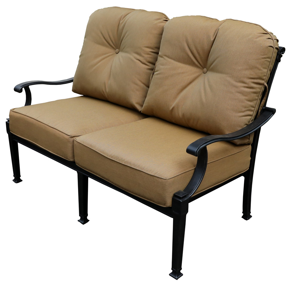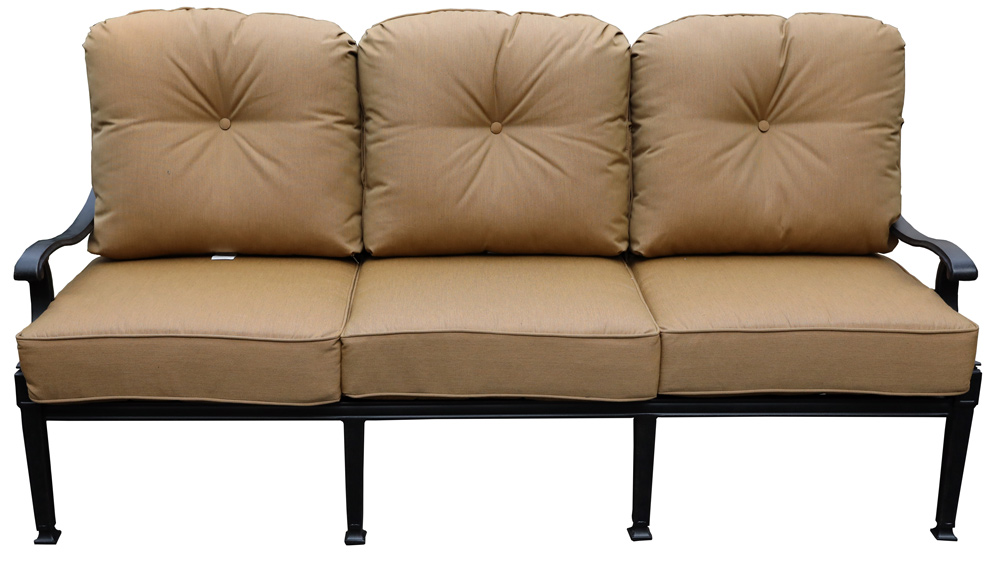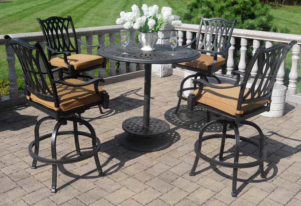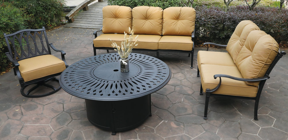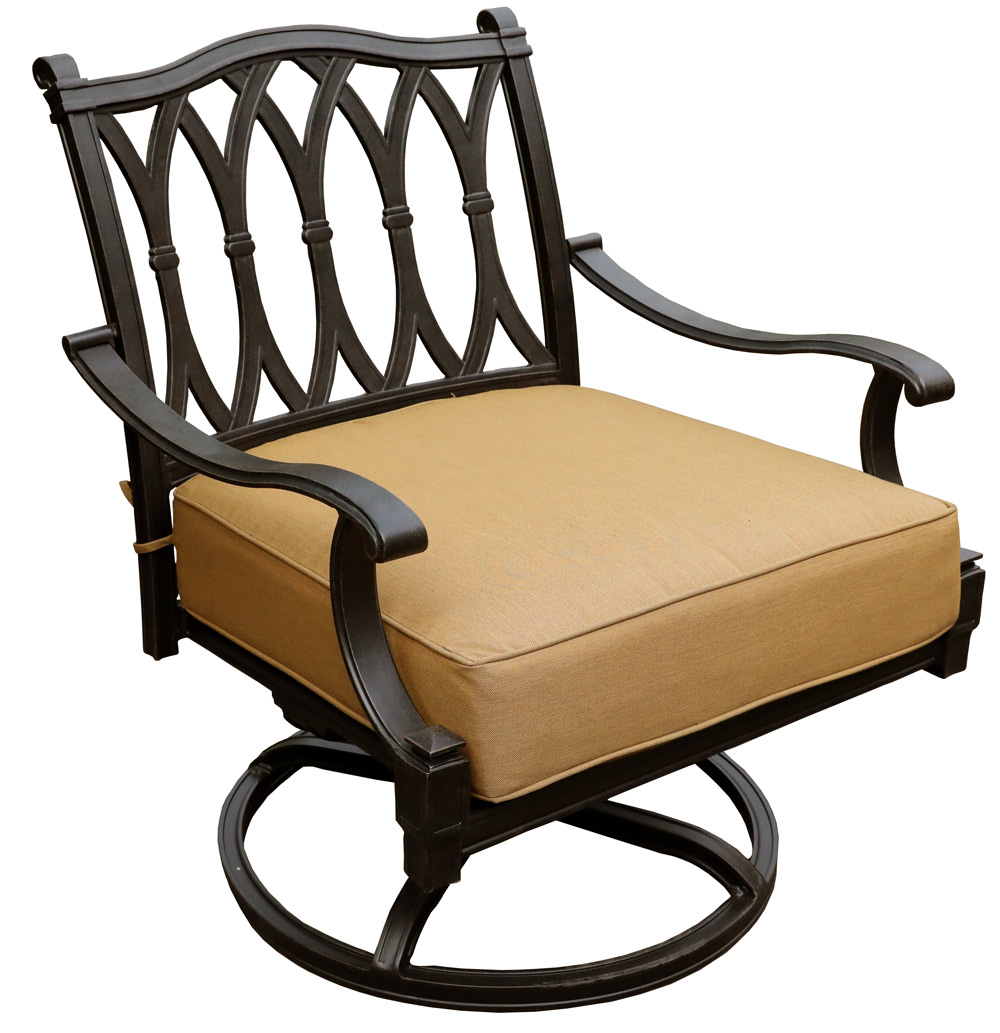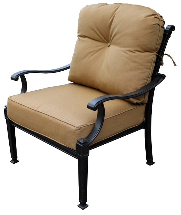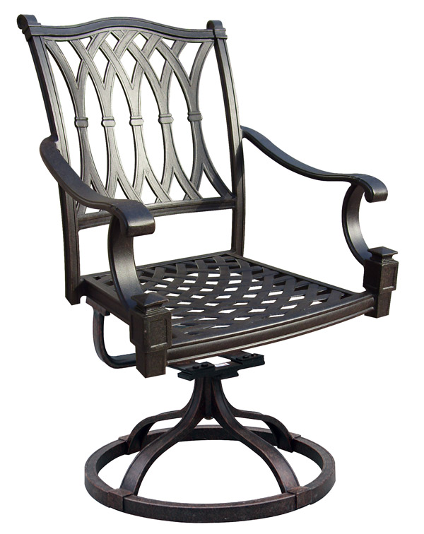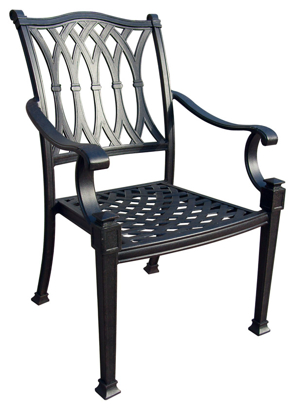 The Elizabeth cast aluminum patio dining chair has a refined, almost formal character that sets it apart from typical patio furniture.