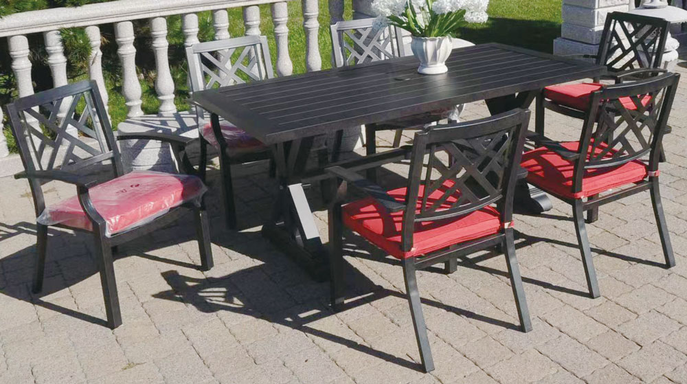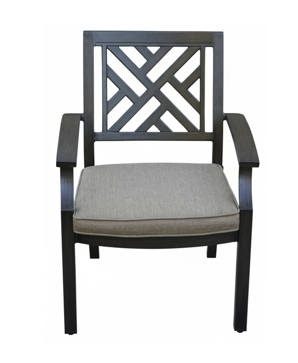 The Fairview cast aluminum patio dining chair is a study in geometric restraint.