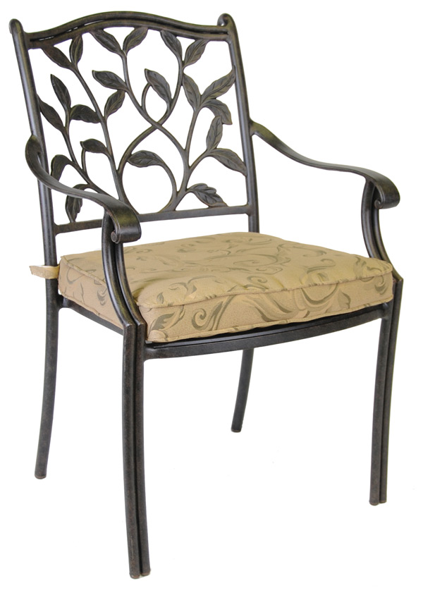 The Ivyland cast aluminum patio furniture chair has a lovely naturalistic quality that feels genuinely thoughtful rather than just decorative.