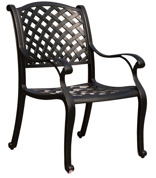 The New Providence patio dining chair has the same honest, well-crafted character as the tables it's designed to accompany. The back and seat are woven in the familiar interlocking diamond pattern, open enough to let air circulate freely on a warm day, and structured enough to give the eye something to appreciate.