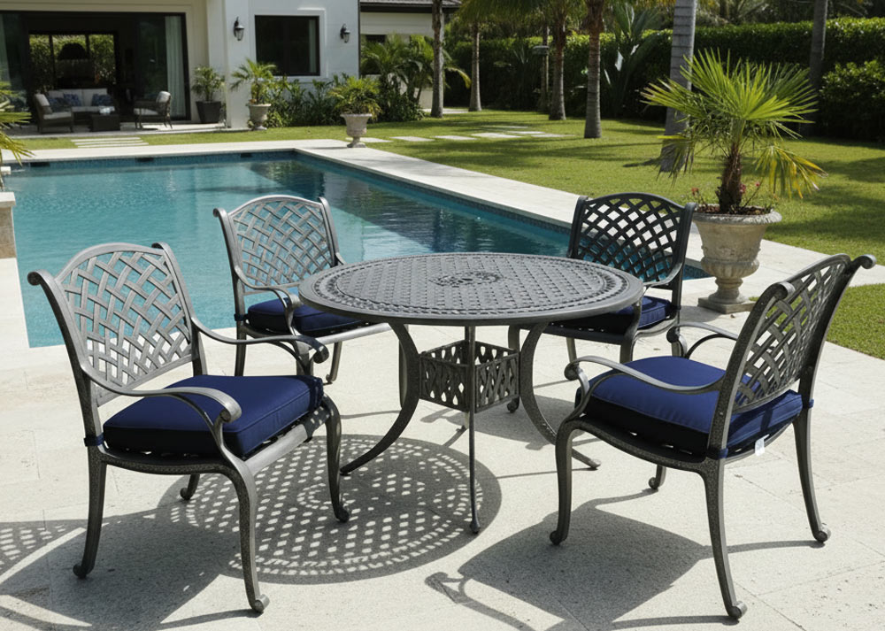 What sets the New Providence chair apart is the quiet detail running along the arms, a delicate decorative border etched into the flat face of each armrest, adding a refined finishing touch that rewards a closer look. It's the kind of detail that speaks to the overall quality of the casting, where even the parts you might overlook have been given proper attention.