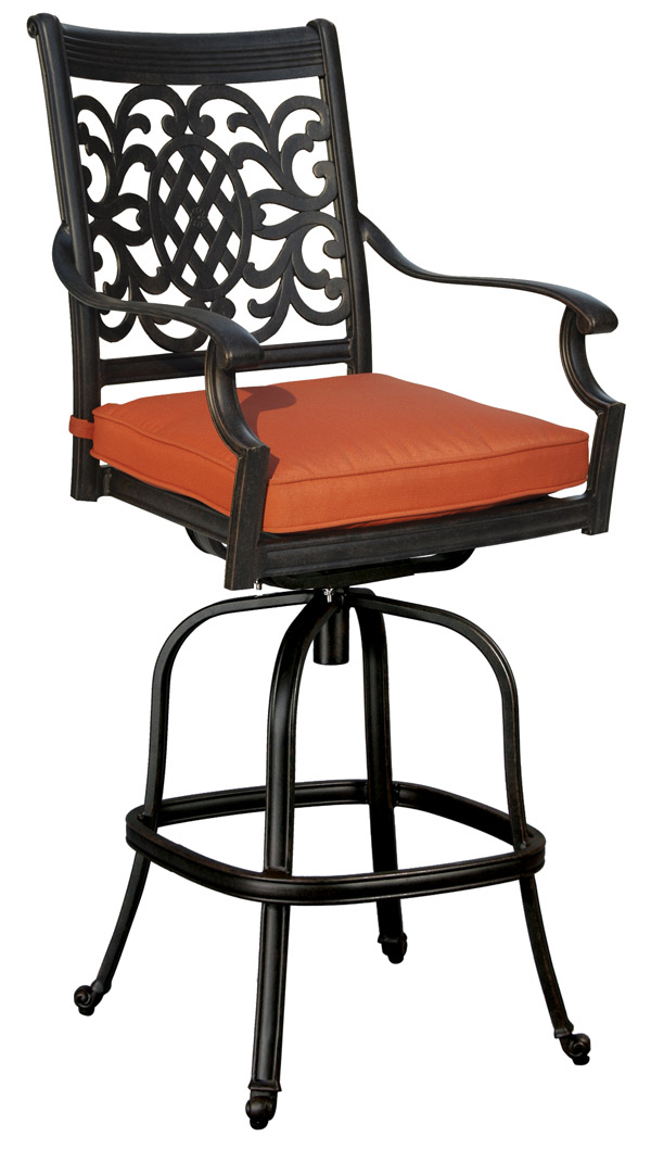 These fully-welded and stackable outdoor dining chairs are available in dining and bar height.